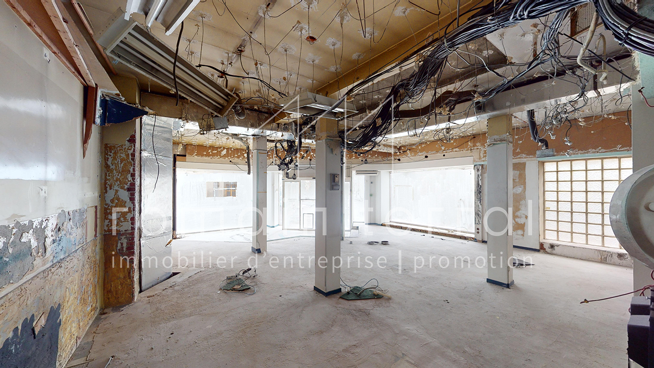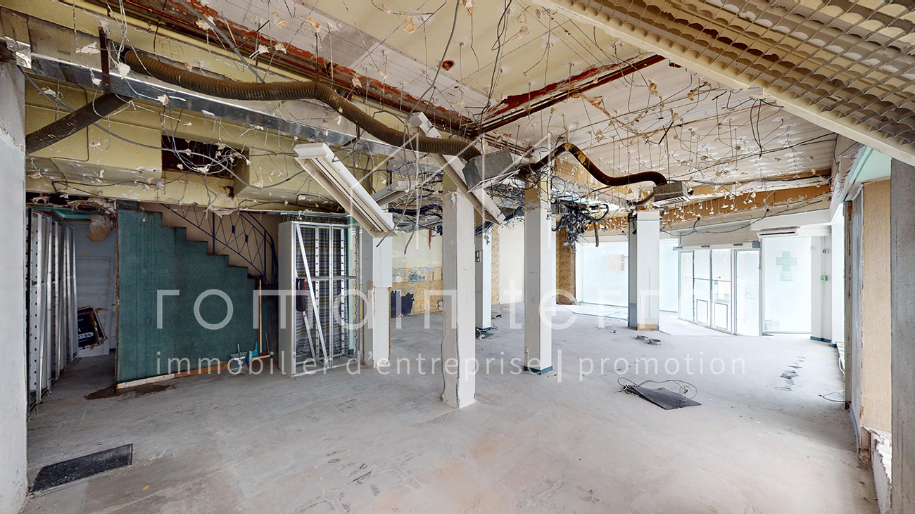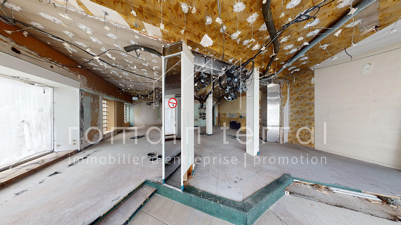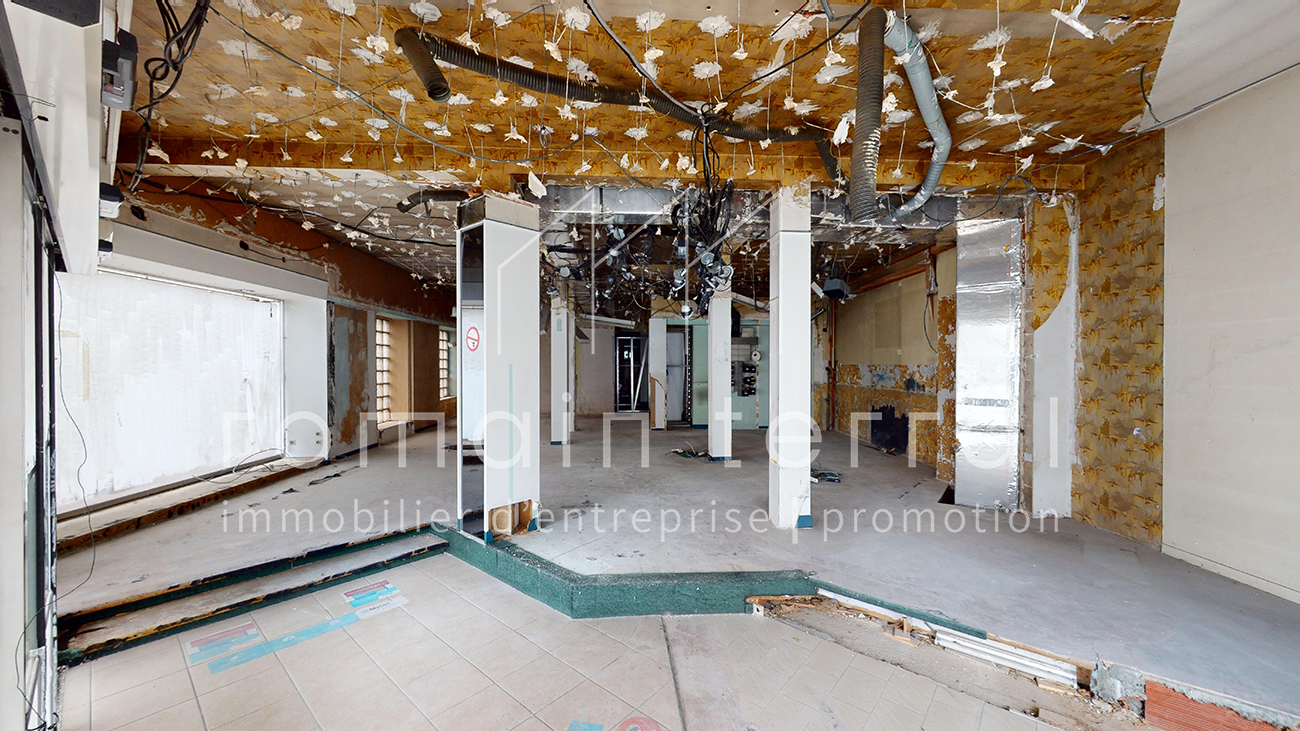 Il fait actuellement l’objet d’une division en copropriété qui sera, à termes ,constituée de deux lots, le second étant un appartement au 1er étage de l’immeuble. Ce local est composé d’un espace de vente d’environ 90m2, et d’un sous-sol à usage de stockage d’environ 55m2.