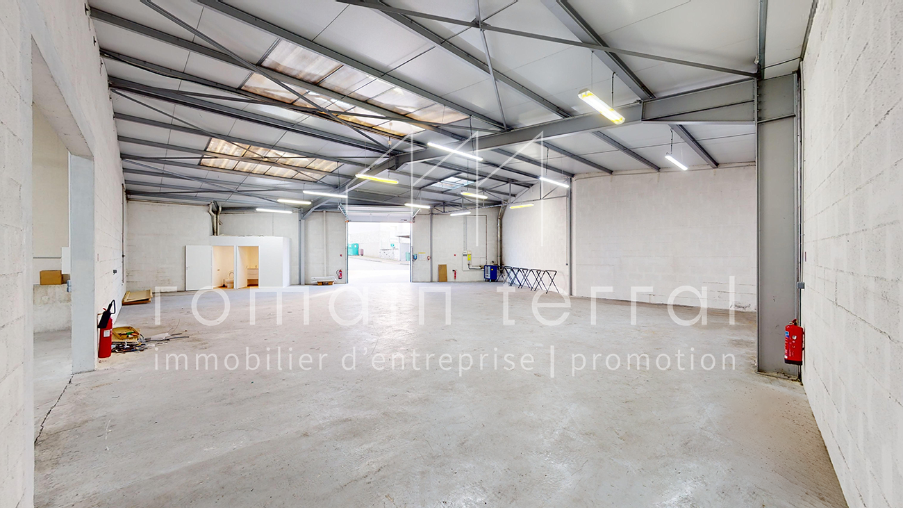 Il dispose d’une porte sectionnelle de 3,5 mètres par 3,5 mètres et de sanitaires.